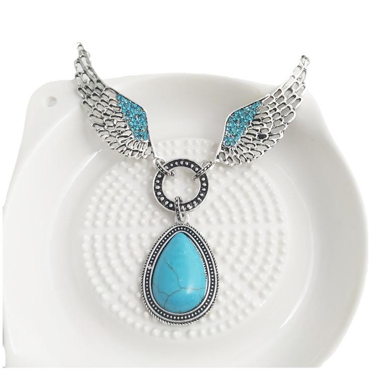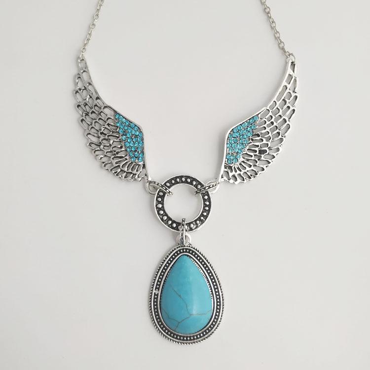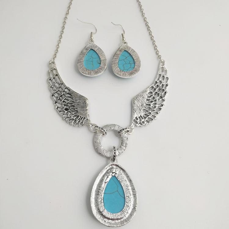 Шикарный европейско-американский бирюзовый комплект из ожерелья и серег с крыльями и каплями воды
