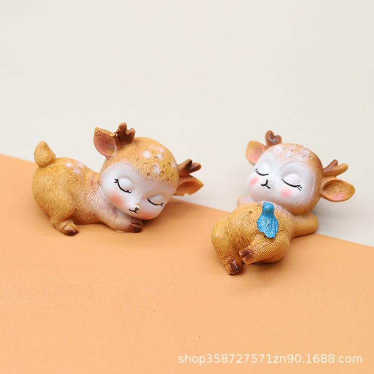 Милая и беззаботная фигурка оленя, микро-ландшафтная декорация, изделие из смолы, настольное украшение для офиса, автомобиля, песочницы, небольшой сувенир, подарок