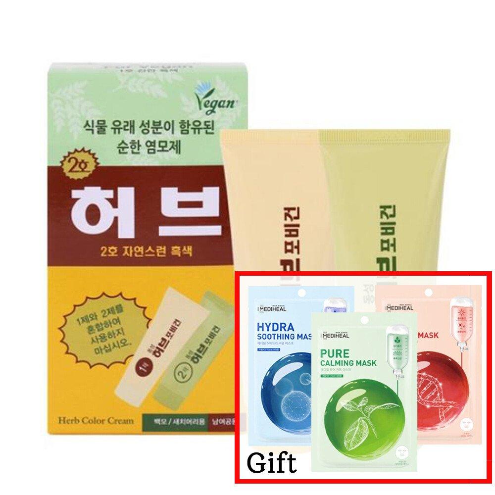 DongSung Крем-краска для волос Herb для веганского сатч-покрытия Веганская краска без лака №. 2 Натуральный черный подарочный набор 3 листа
