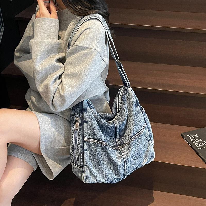 Denim Bag Vintage Commuter Shoulder Crossbody Bag Large Capacity Tote Bag — купить товар онлайн с бесплатной доставкой по всему миру!