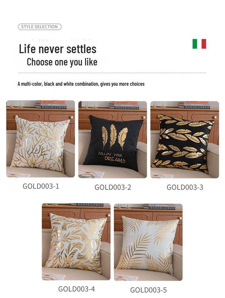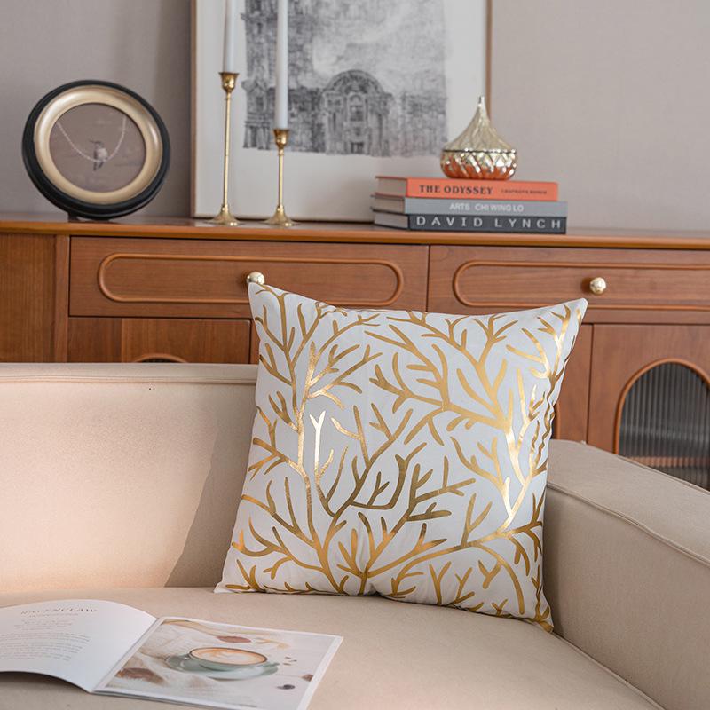 Короткая плюшевая наволочка Temu Hot Stamping Golden Leaf - Ретро-легкая роскошная наволочка для дивана