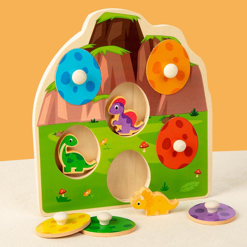 All English Wooden Three-Dimensional Dinosaur Egg Color Pairing Puzzle Children'S Animal Hand Grab Board Exercise Fine Play — купить товар онлайн с бесплатной доставкой по всему миру!