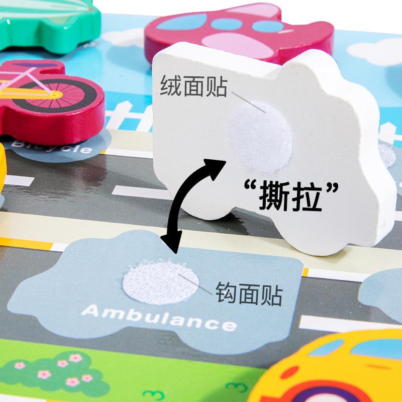 Деревянный детский пазл для раннего развития, креативный пазл на липучке, трехмерный пазл, строительный блок, пазл с машинами и животными