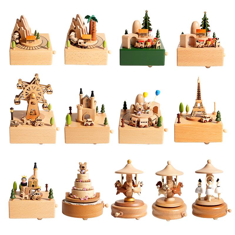 Деревянная музыкальная шкатулка Креативная музыкальная шкатулка Ручная работа Карусель Игрушка Украшение Детский Рождественский Подарок на День рождения