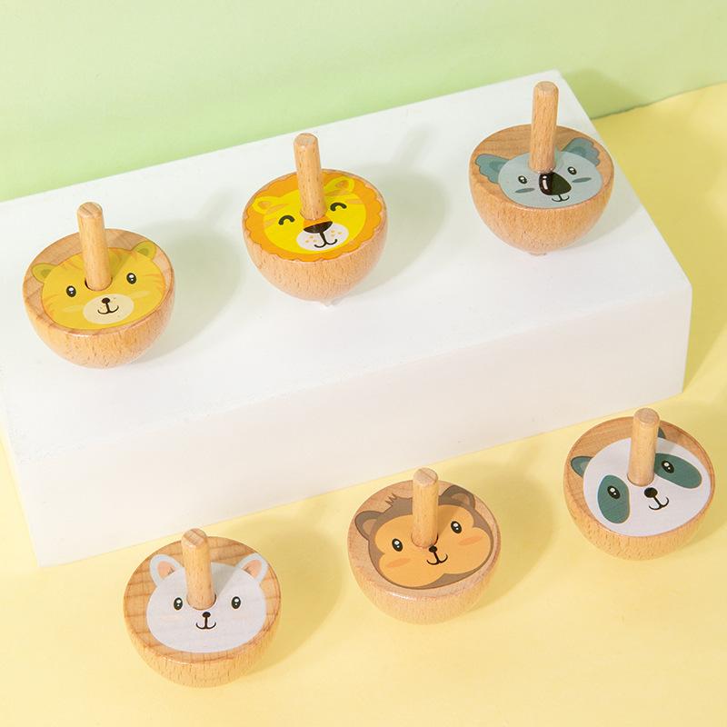 Большой Фрукт Животное Деревянный Палец Вращающийся Маленький Гироскоп Детские Традиционные Ностальгические Деревянные Раннее Развитие Обучающие Игрушки