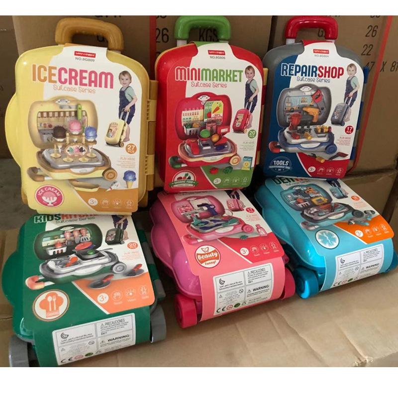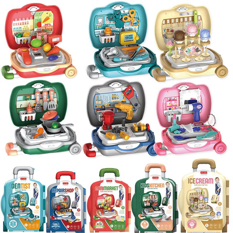 Детский игровой домик, переносной чемодан, комод, музыкальный столик, кухонная утварь, медицинское оборудование, чемодан на колесиках, набор игрушек