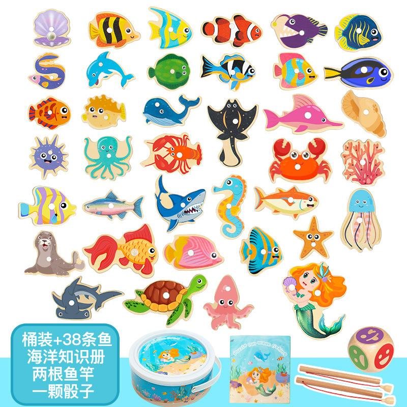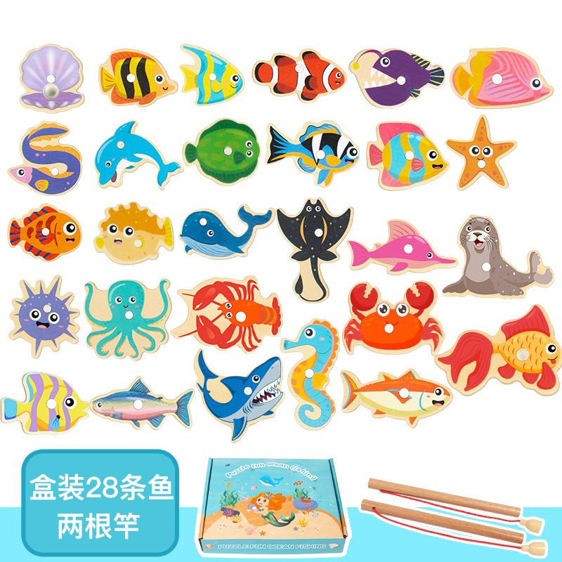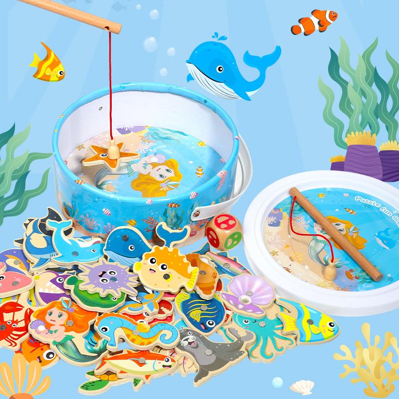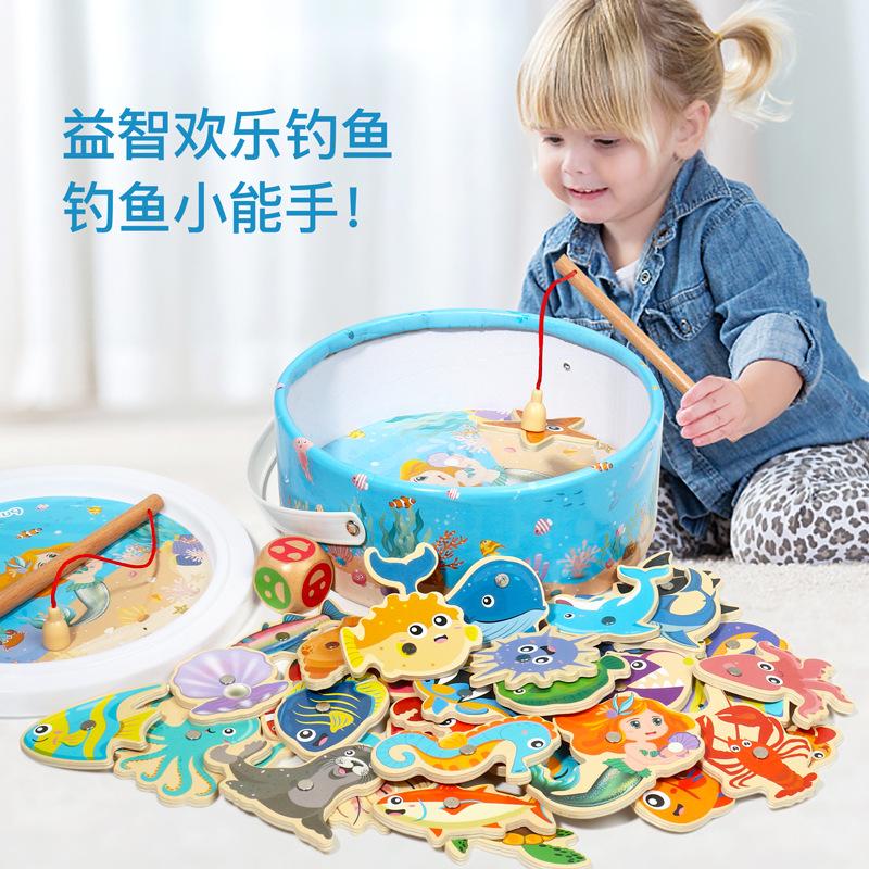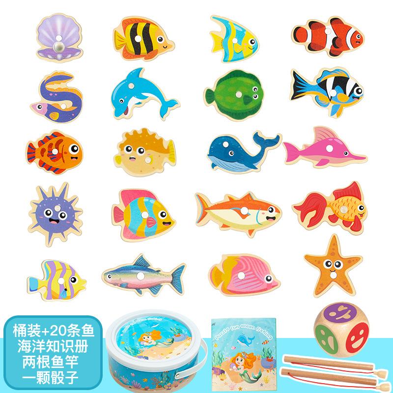 Игрушки для рыбалки Детские магнитные рыбки Деревянные для малышей Бочкообразные Морские животные Познавательные Интерактивные игрушки, Игры для рыбалки