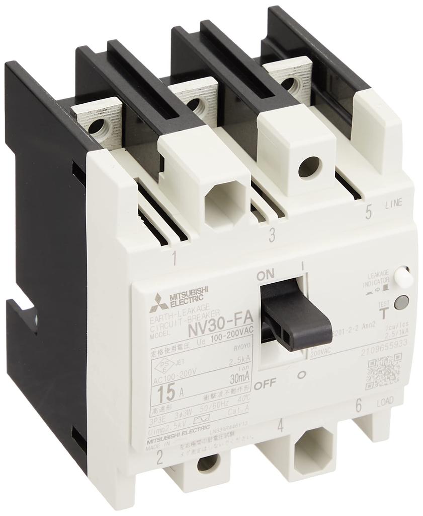 Автоматический выключатель защиты от утечки на землю серии FA Mitsubishi Electric для панелей управления Вертикальный размер 72 мм Простая задняя проводка 3P 15A 30MA NV30-FA 100-200V