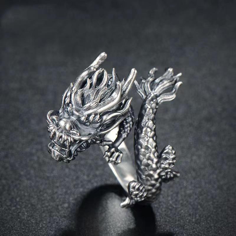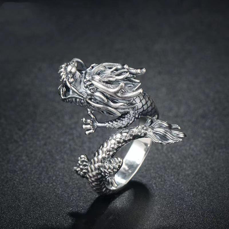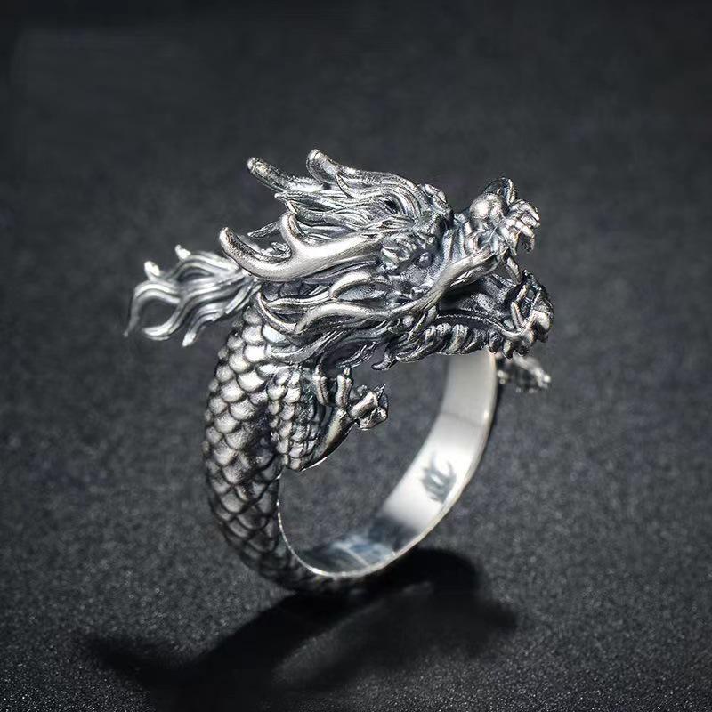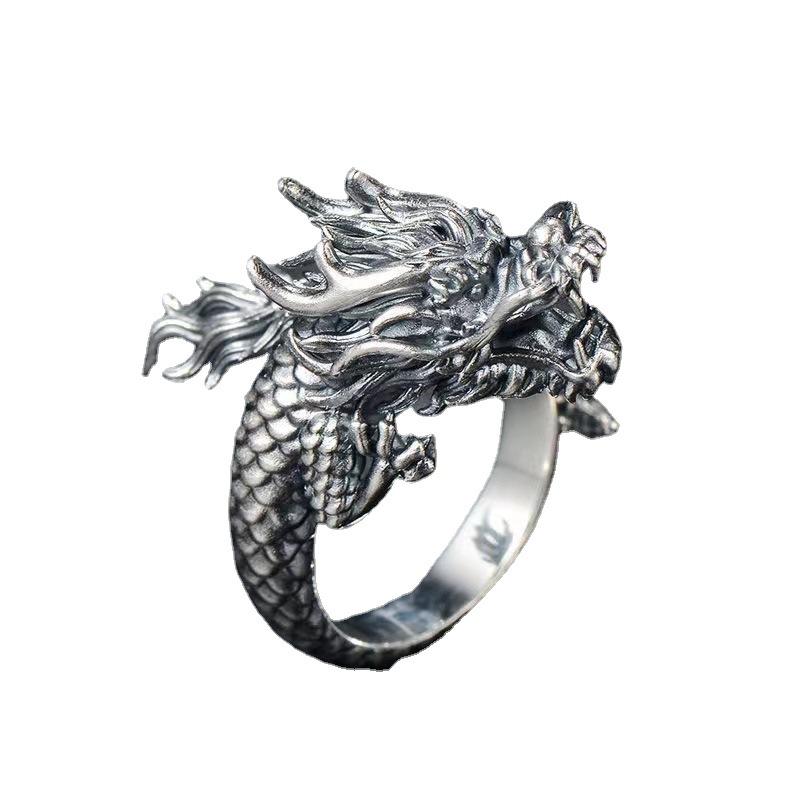 Мужское кольцо Chiba в стиле ретро с драконом-властителем — уникальное серебряное кольцо на указательный палец в китайском стиле с тайскими мотивами.