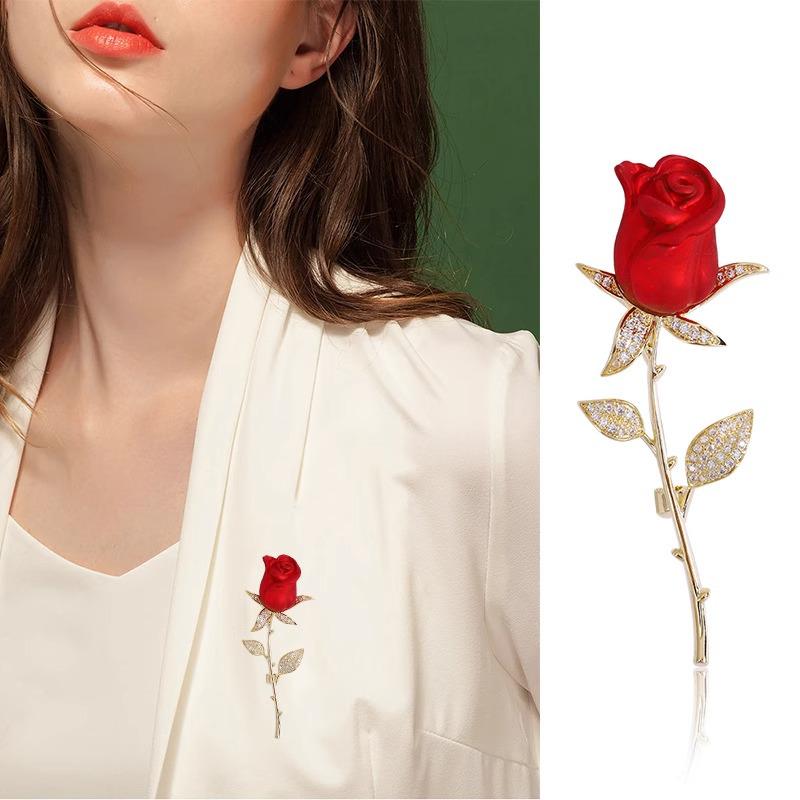 Премиальная брошь и булавка «Красная роза» с синим цветочным акцентом для пальто и платьев