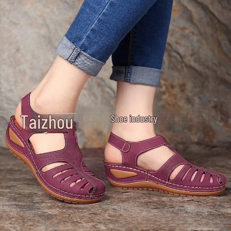 Женские босоножки в римском стиле на танкетке с открытым носком 2022 года — большой размер с полым дизайном.
