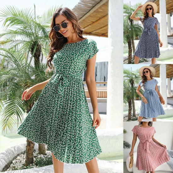 2025 Цветочная плиссированная юбка с коротким рукавом - Весна/Лето Европейский и американский стиль
