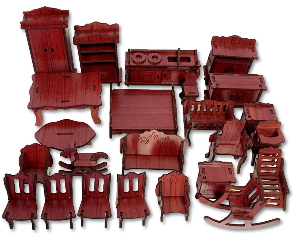Собранный комплект деревянной миниатюрной мебели. цвет: Темно-коричневый Количество предметов: Всего 24 Размер продукта: 30 x 20 x 1 см, 686 г Размер каждой части: 3 стороны примерно от 4 до 10 см. Деревянный набор миниатюрной мебели-пазла, который позволяет легко сделать симпатичную мебель мини-размера.. Ремесло из дерева. Идеально подходит для кукольных домиков и модельной мебели..