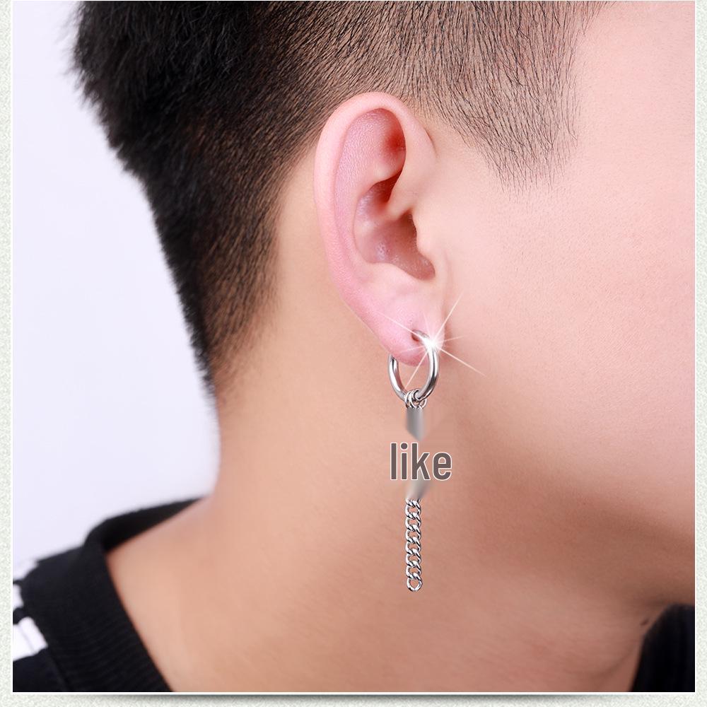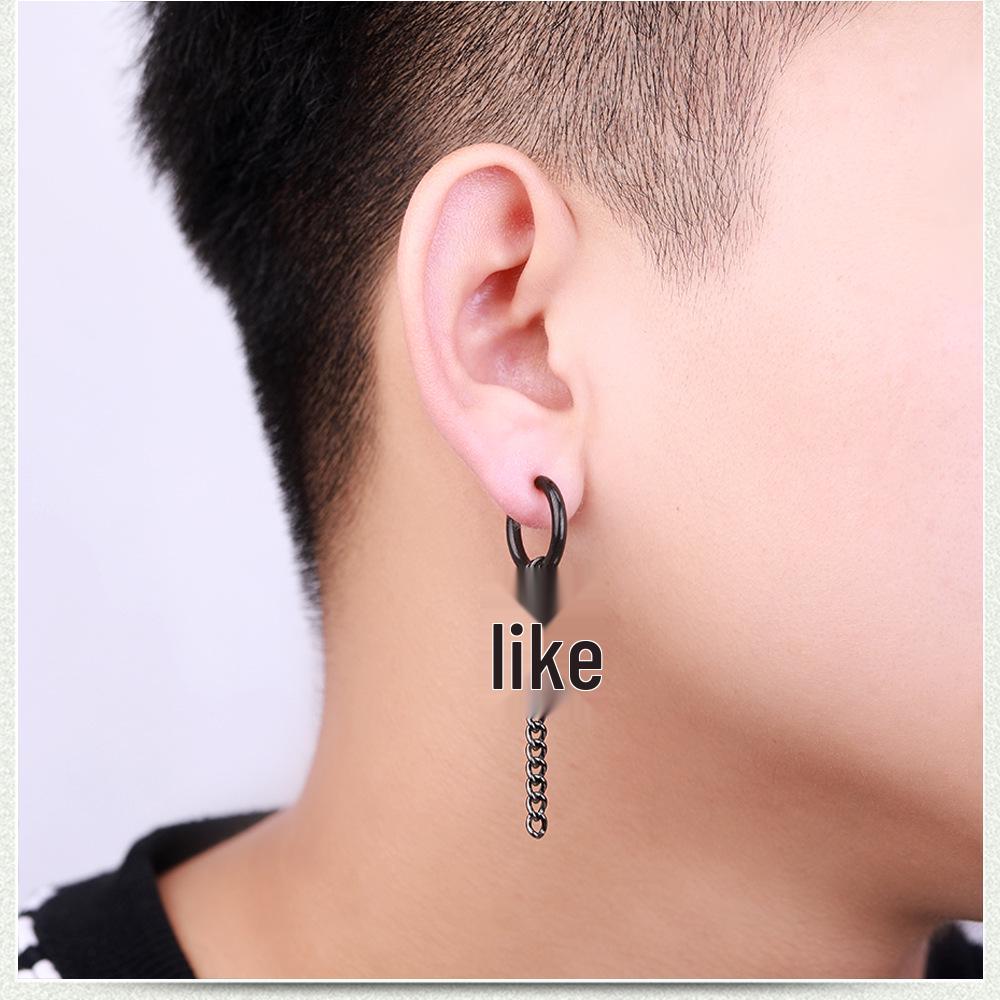 Серьги-кольца из титана в корейском стиле с кисточками-цепочками, не требующие прокола, для мужчин