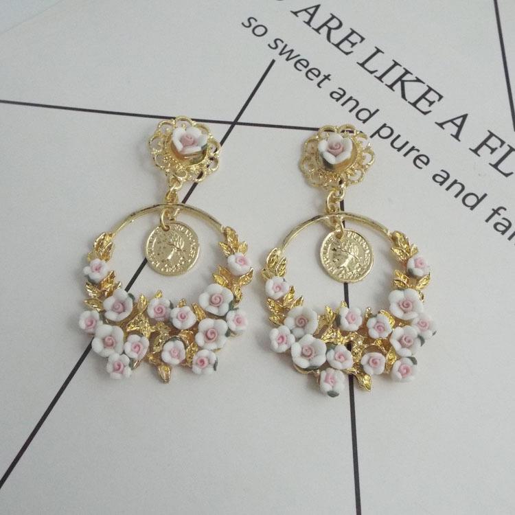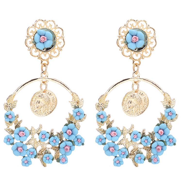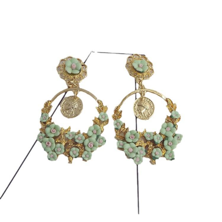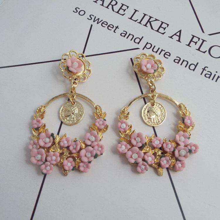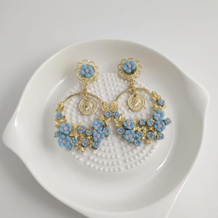 Европейские и американские ретро серьги-кольца с цветами