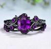 Кольца парные Sanjie Европейско-американский Ретро Рубин и Черный оружейный цвет Ветка розы
