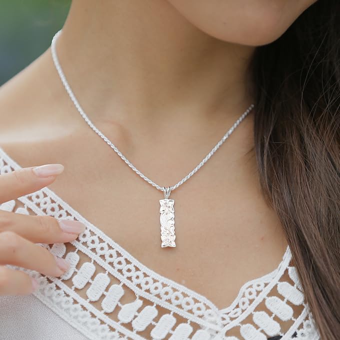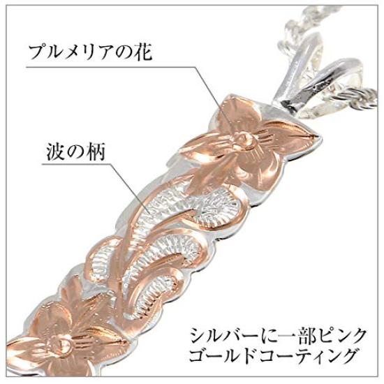 Это подвеска-топ в виде вертикального бруска, гавайское ювелирное изделие.. Этот топ в форме традиционных гавайских украшений всегда популярен. Серебряный материал частично покрыт розовым золотом, что придает ему элегантную отделку. Также мило с небольшими аксессуарами сбоку. Дизайн - популярный мотив волны и плюмерии. Этот дизайн, как говорят, приносит повторяющееся счастье, и является неизменно популярным.. Волны приходят и уходят, и приходят снова и снова. Оттуда волновой узор — это узор, наполненный пожеланием, чтобы счастье приходило снова и снова.. Это классическое колье в виде планки зажато между волнообразным узором и дизайном цветов плюмерии, которые являются цветком любви и часто используются для леев на свадьбах на Гавайях, и имеют очень сладкий запах. Он как раз нужного размера и его можно носить в любой ситуации, от повседневной носки.
