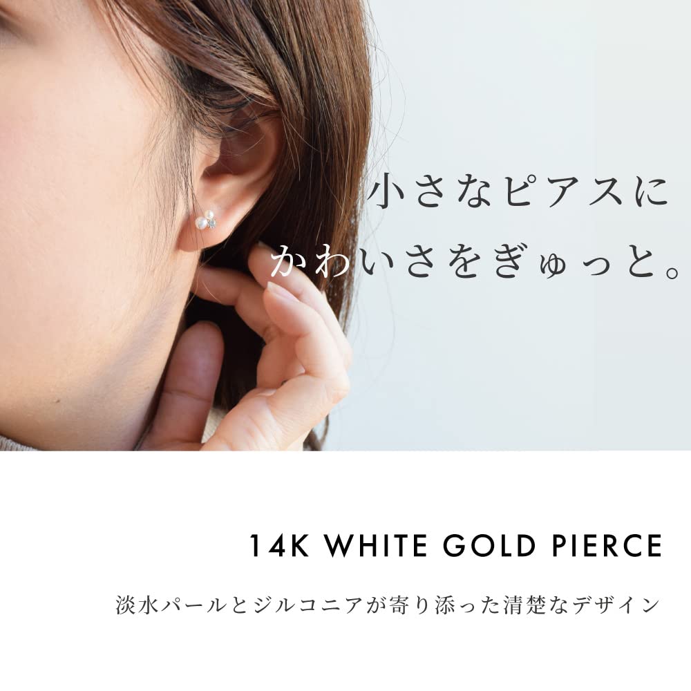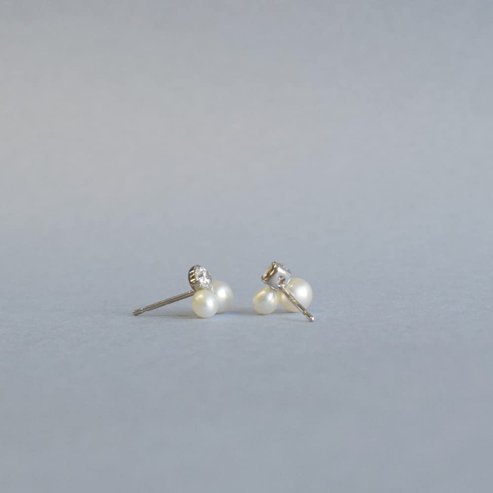 Серьги из белого золота 14 карат с жемчугом Акойя и кубическим цирконием 14k K14 жемчуг камень июня Sa212 [Четырехлистный клевер] женские