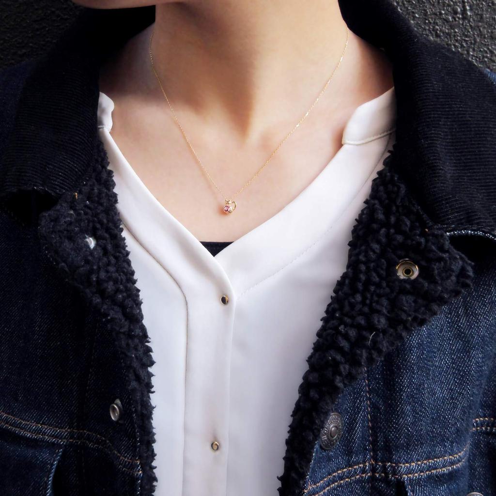 Miwahouseki Кошка держит свой камень, соответствующий месяцу рождения, розовый октябрь, ожерелье Nyanko [Miwahouseki] мотив, дорогой хозяин, камень, соответствующий месяцу рождения, турмалин, золото,