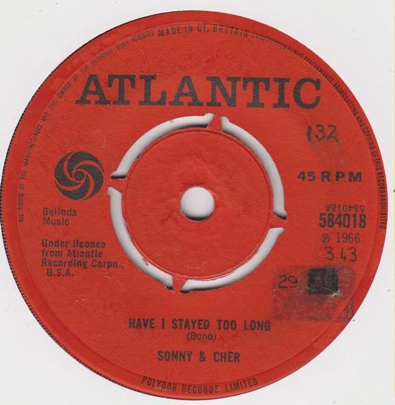 7-дюймовая пластинка SONNY & CHER - Have I Stayed Too Long 584018 Atlantic 1966 UK Поп Б/У