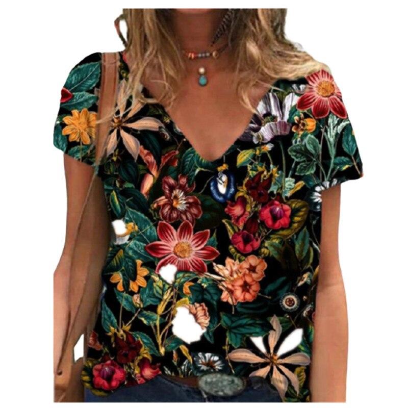 Модные весенние блузки с принтом бабочек, футболки с коротким рукавом и V-образным вырезом, повседневные