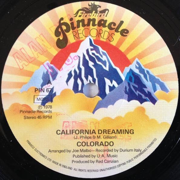 7inch Record COLORADO - California Dreaming PIN67 Pinnacle Record 1978 UK Dance & Electronica Used
