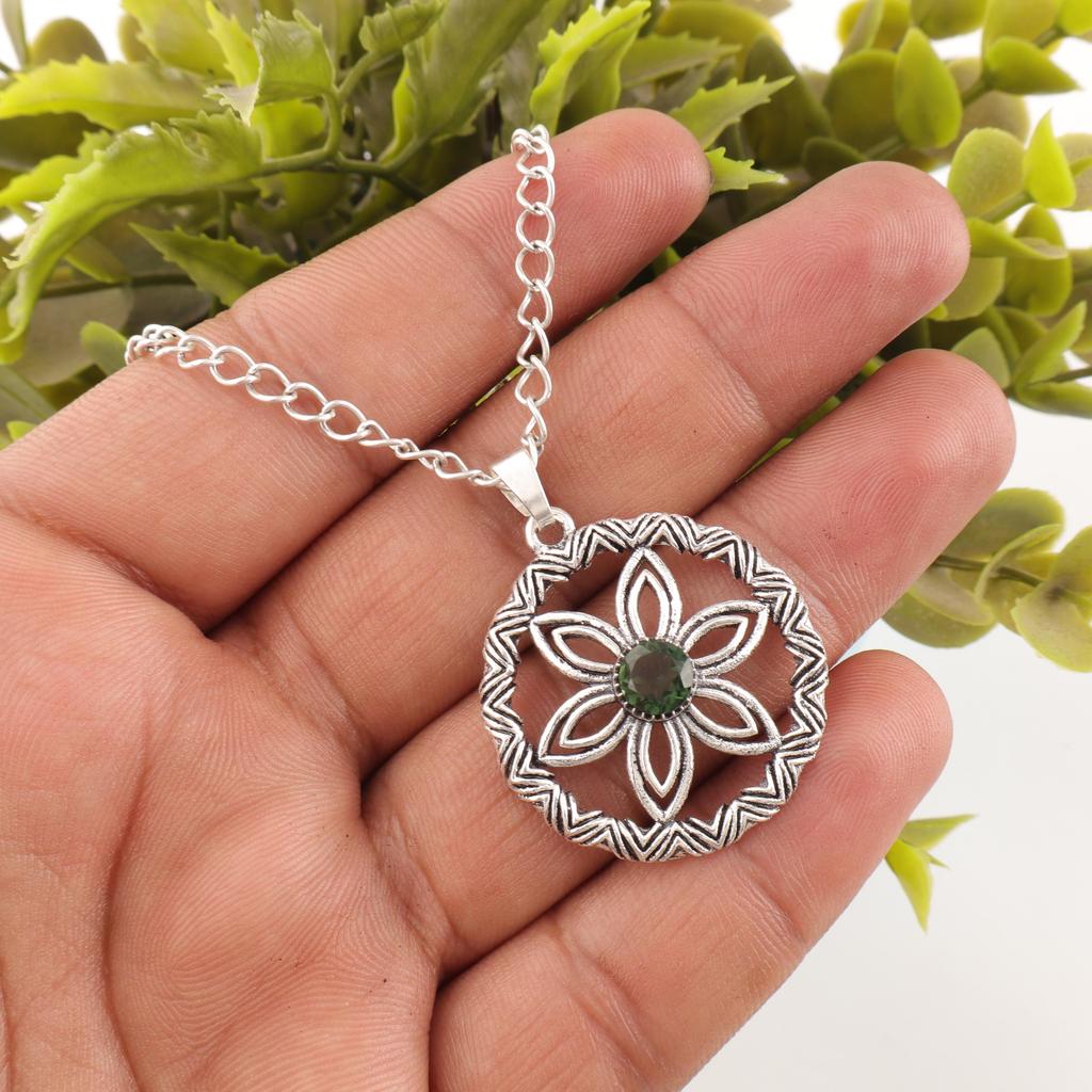 Подвеска из зеленого турмалина ручной работы, серебряная подвеска 925 пробы, старинные ювелирные изделия, подвеска для подарка на помолвку