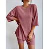 Женский весенне-осенний повседневный комплект однотонного цвета, свободный топ с круглым вырезом + шорты, свежий комплект из двух предметов