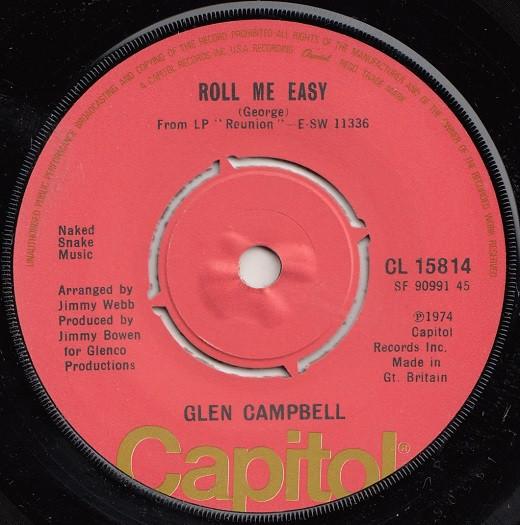 7-дюймовая пластинка ГЛЕН КЭМПБЕЛЛ - Roll Me Easy / It's A Sin CL15814 CAPITOL RECORDS 1975 Великобритания Кантри Б/У