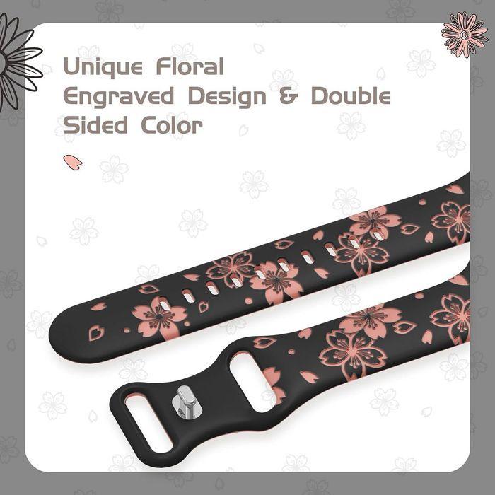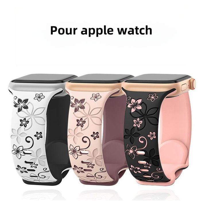 Bracelet pour Apple Watch Series Ultra 2/3, 11, 10, 9 8 SE 7 6 5 4 3 2 1 46mm-45mm-44mm-42mm-49mm, Silicone Motif Fleur - Rose