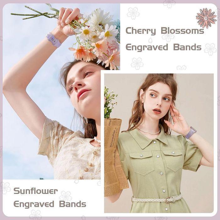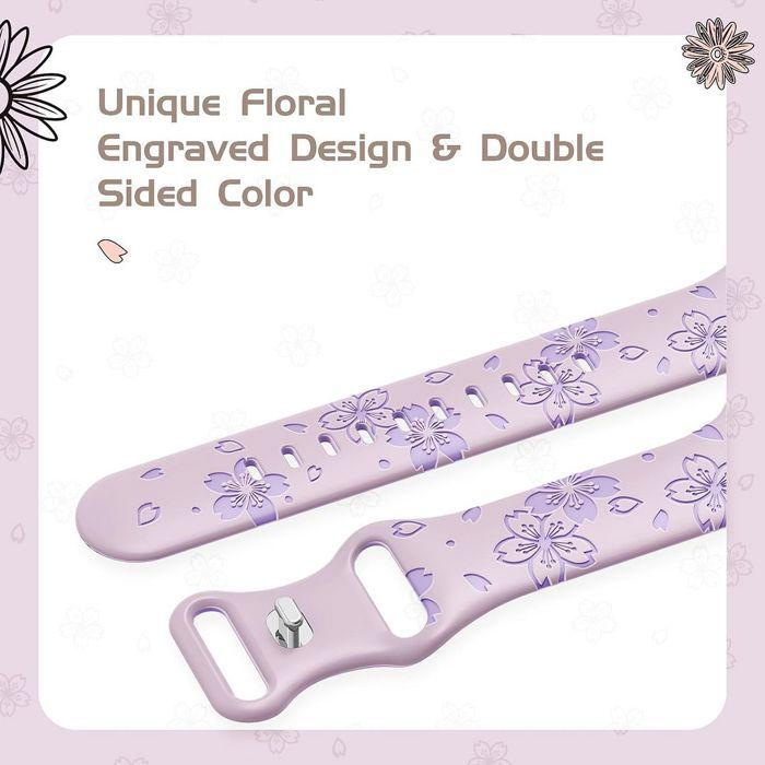 Bracelet pour Apple Watch Series 11 10 9 8 SE 7 6 5 4 3 2 1 Ultra 1/2/3, 42mm-44mm-45mm-46mm-49mm Silicone Lavande Motif Fleur