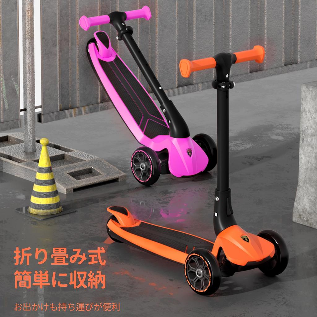 Кик-скутер Lamborghini со светодиодами Легкий кик-скутер с задним колесом для малышей Светящиеся колеса, 3-ступенчатая регулировка, Тихий, Легкий, Складной, Для переноски,