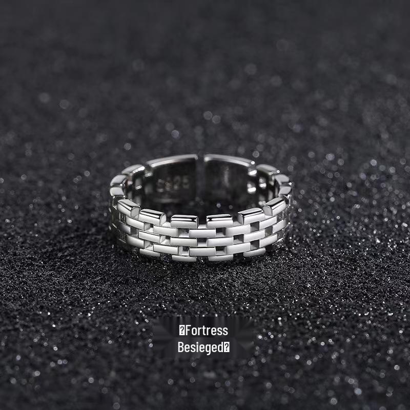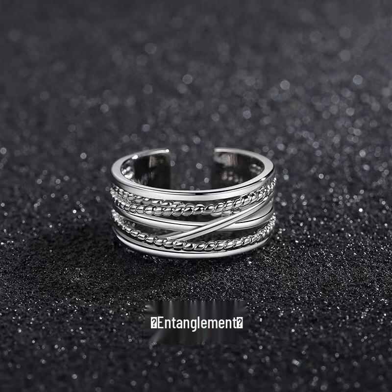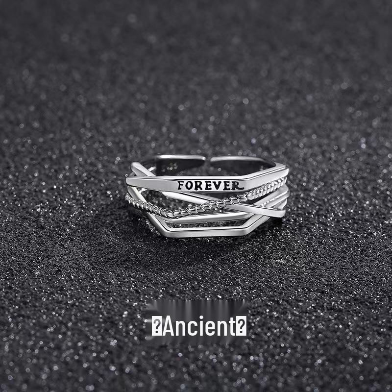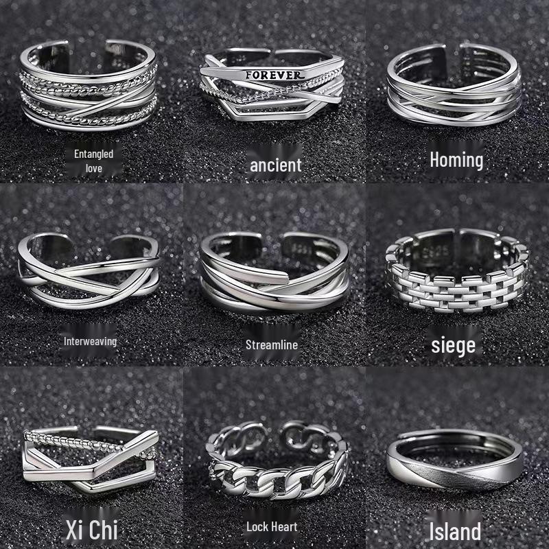 Мужское ретро открытое серебряное кольцо Chiba - Накладная линия и трендовый дизайн