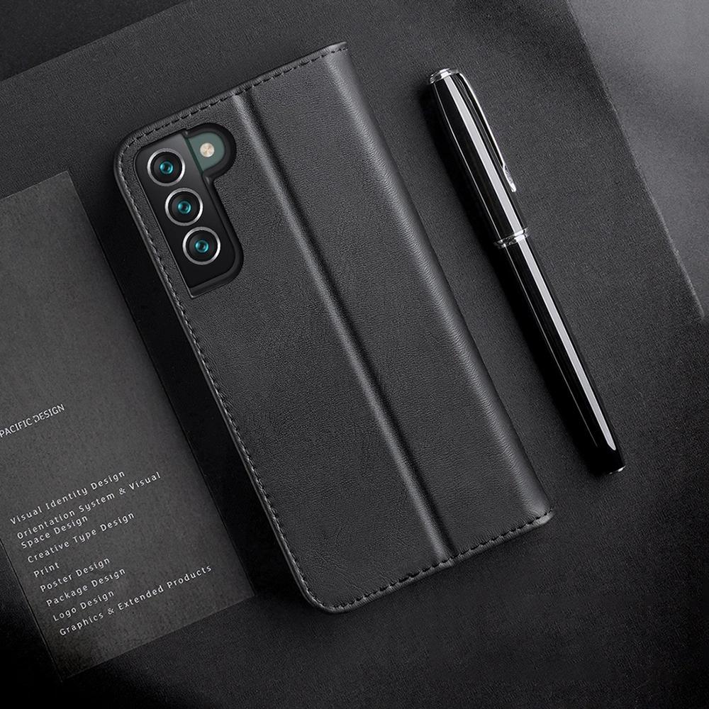 Dux Ducis Hivo Skórzane Etui Z Klapką Pokrowiec Ze Skóry Naturalnej Portfel Na Karty I Dokumenty Samsung Galaxy S22+ (S22 Plus) Czarny