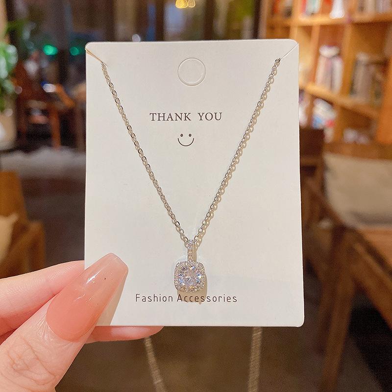 Элегантное ожерелье из титановой стали с микроинкрустацией цирконием, Южная Корея: Универсальная, простая и модная серебряная ключичная цепочка