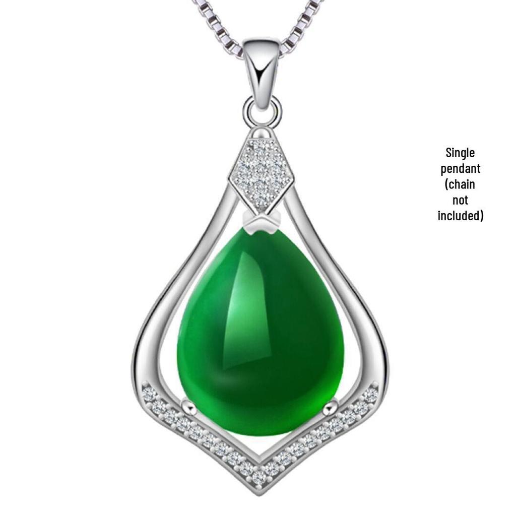 Элегантное посеребренное медное ожерелье с подвеской из зеленого халцедона – модная подвеска в форме капли для женщин