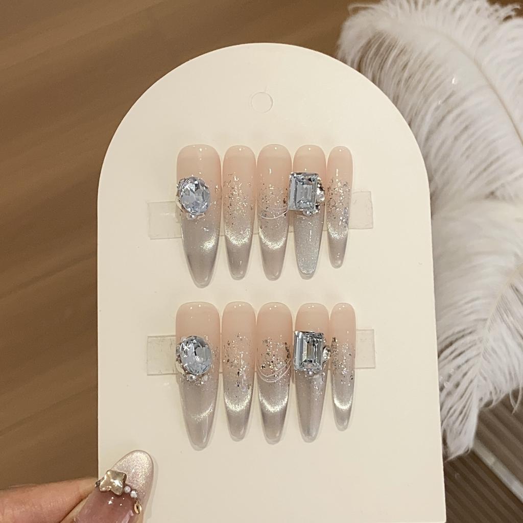 Ручная работа Градиент нюдового цвета Французский кошачий глаз Пайетки Насыпь Круглый бриллиант Квадратный бриллиант Светло-зеленый Синий Носить Броня