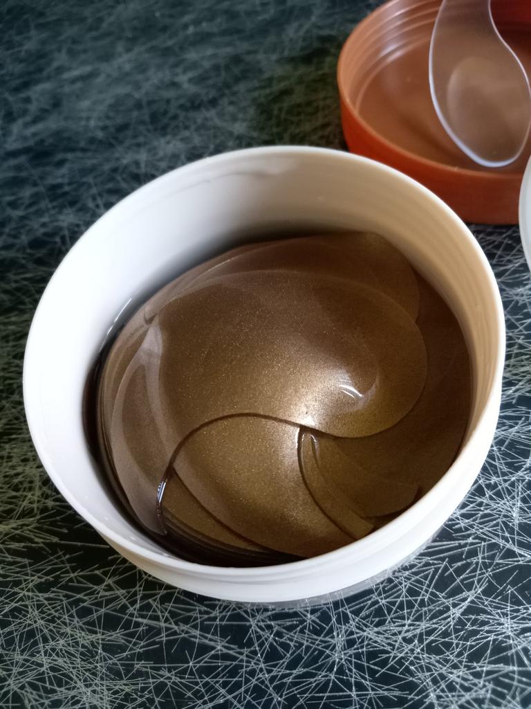 Навалено было кучей, мало жидкости... Но баночка сухая, хорошо упакована... дело свое делают, мне нравится, кожа после них разглаживается... Но будем реалистами😂морщины все равно возвращаются.. Пахнет кофе или что то приближенное, приятно... Патчи плотные, мне понравились. Не съезжают с лица, как некоторые сильно влажные👍.. Для меня это важно... Не особо люблю, когда патчи плавают в этой жиже... Мне кажется, как буд то их маловато... Не считала😄..