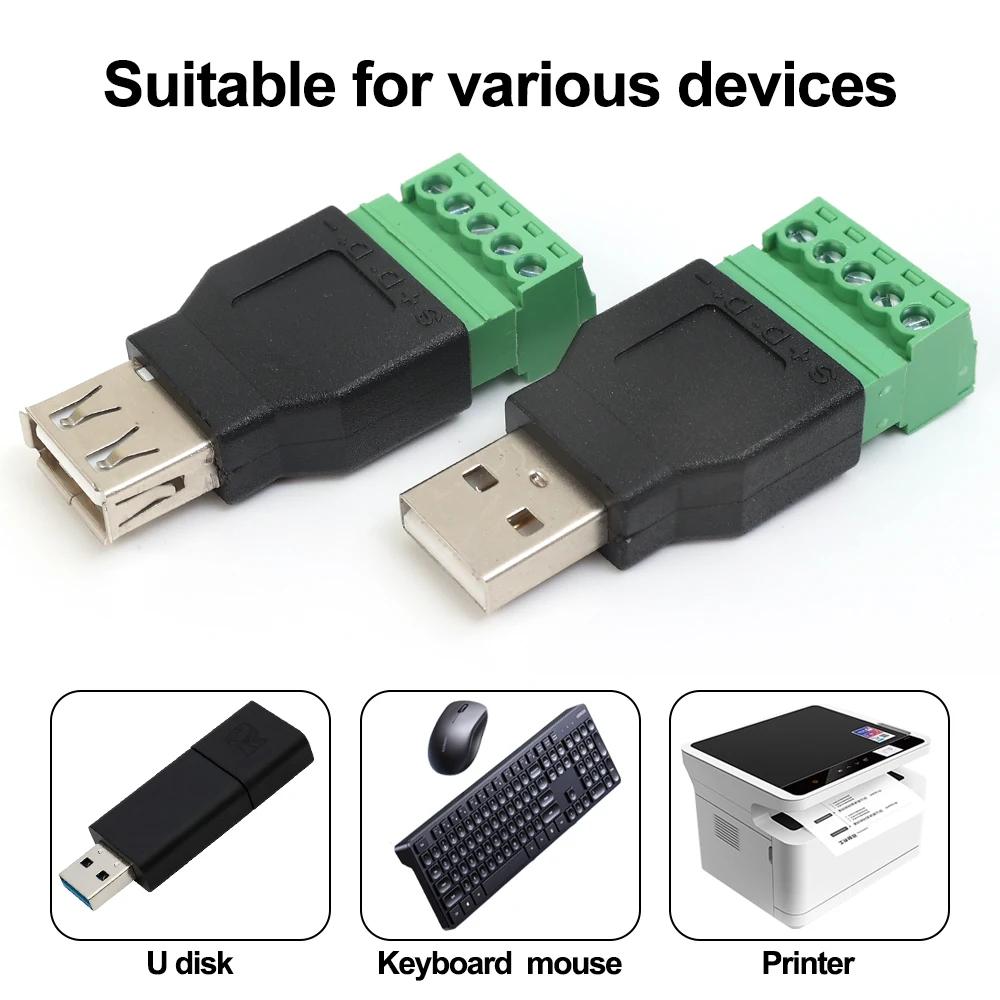 USB 2.0 Тип A Папа/Мама к 5-контактному винтовому разъему USB-гнездо с экраном USB2.0 к штекеру с винтовыми клеммами Сварка не требуется