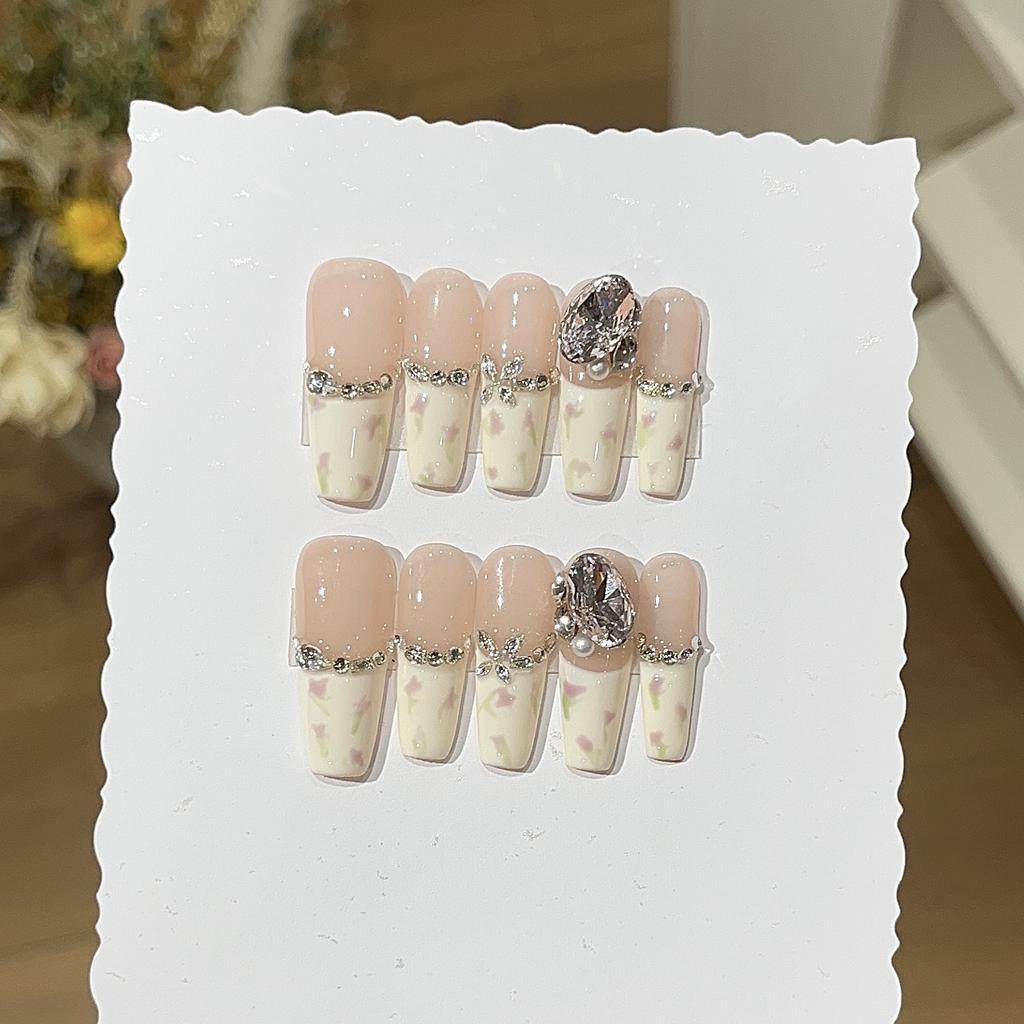 Персиковый кружевной узор Весенняя и летняя атмосфера Французский пасторальный стиль Расписанный вручную кремовый цветочный ворсовый дрель-костюм