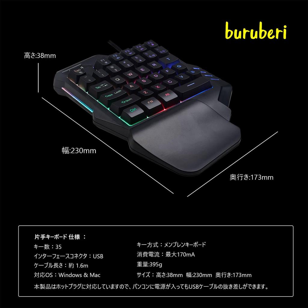 [Характеристики клавиатуры]: Изготовлен из АБС-материала и металлической алюминиевой панели, оснащен 35 клавишами. Размер составляет 35 мм в высоту, 230 мм в ширину, 175 мм в глубину и весит 400 г. Подходит как для левой, так и для правой руки, и разработан для снижения усталости даже при работе в течение длительного времени.