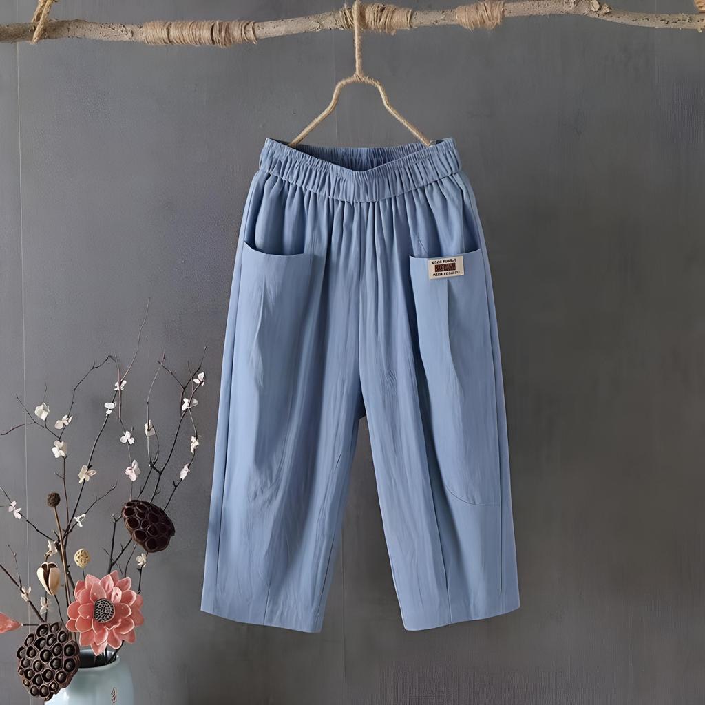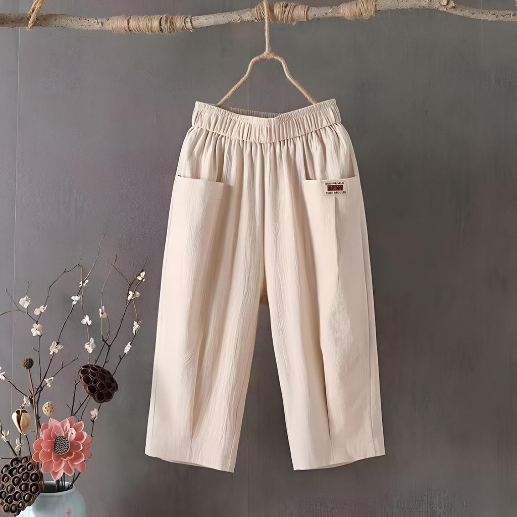 Укороченные брюки из хлопка и конопли, женские летние свободные брюки-шаровары больших размеров с эластичной резинкой на талии, летние женские повседневные брюки