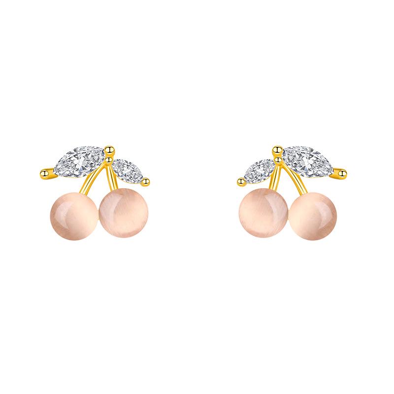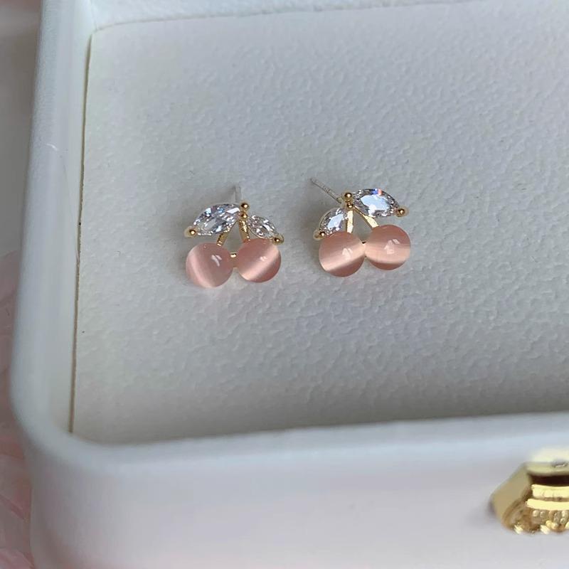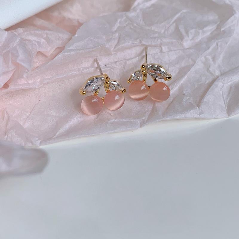 Элегантные женские серьги-вишни с розовым цирконием — легкий, модный фруктовый дизайн с милым очарованием