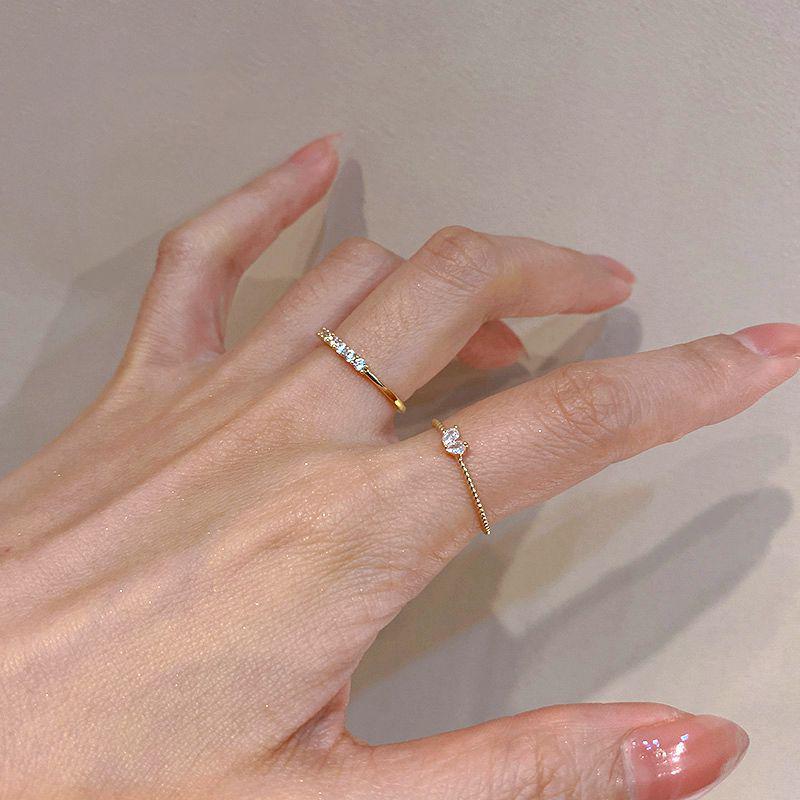 Набор штабелируемых колец-сердечек нишевого дизайна: Кольца с открытым индексом из двух частей - Изысканная корейская мода для женщин