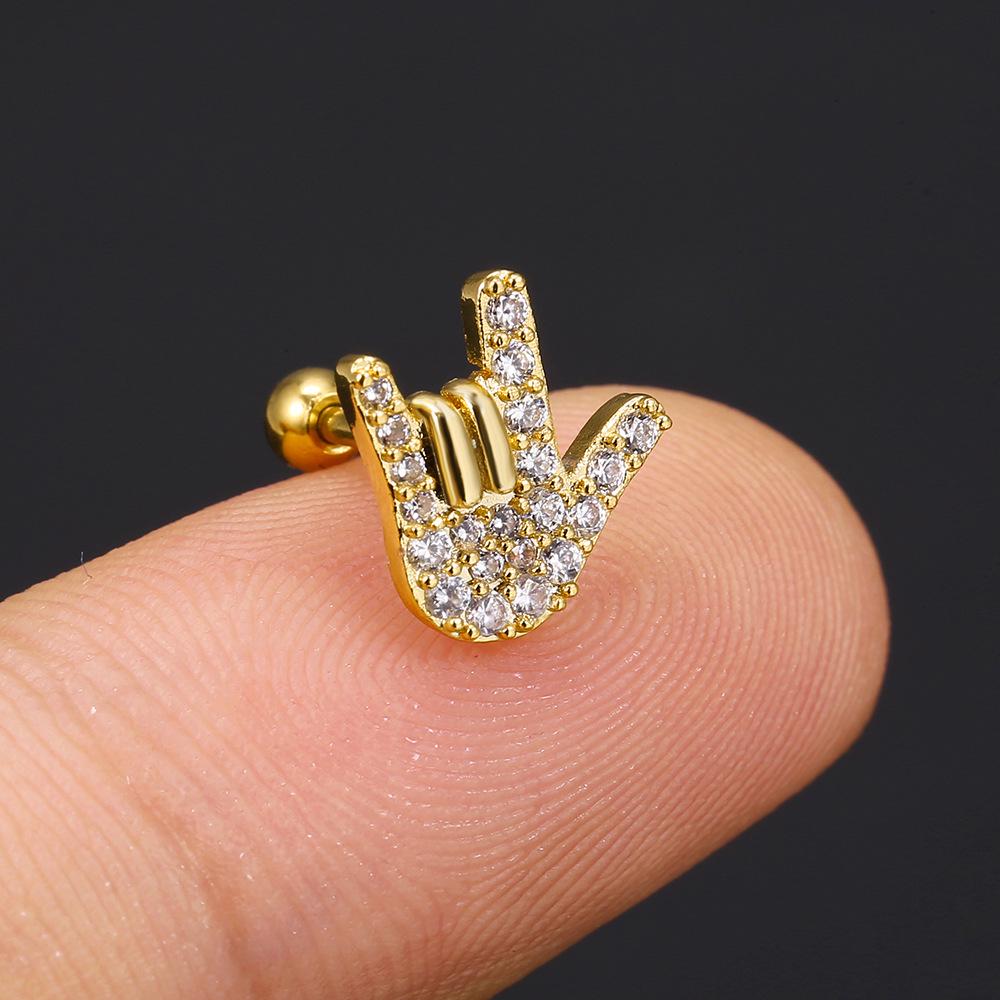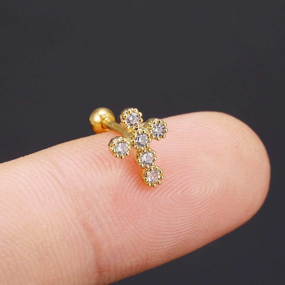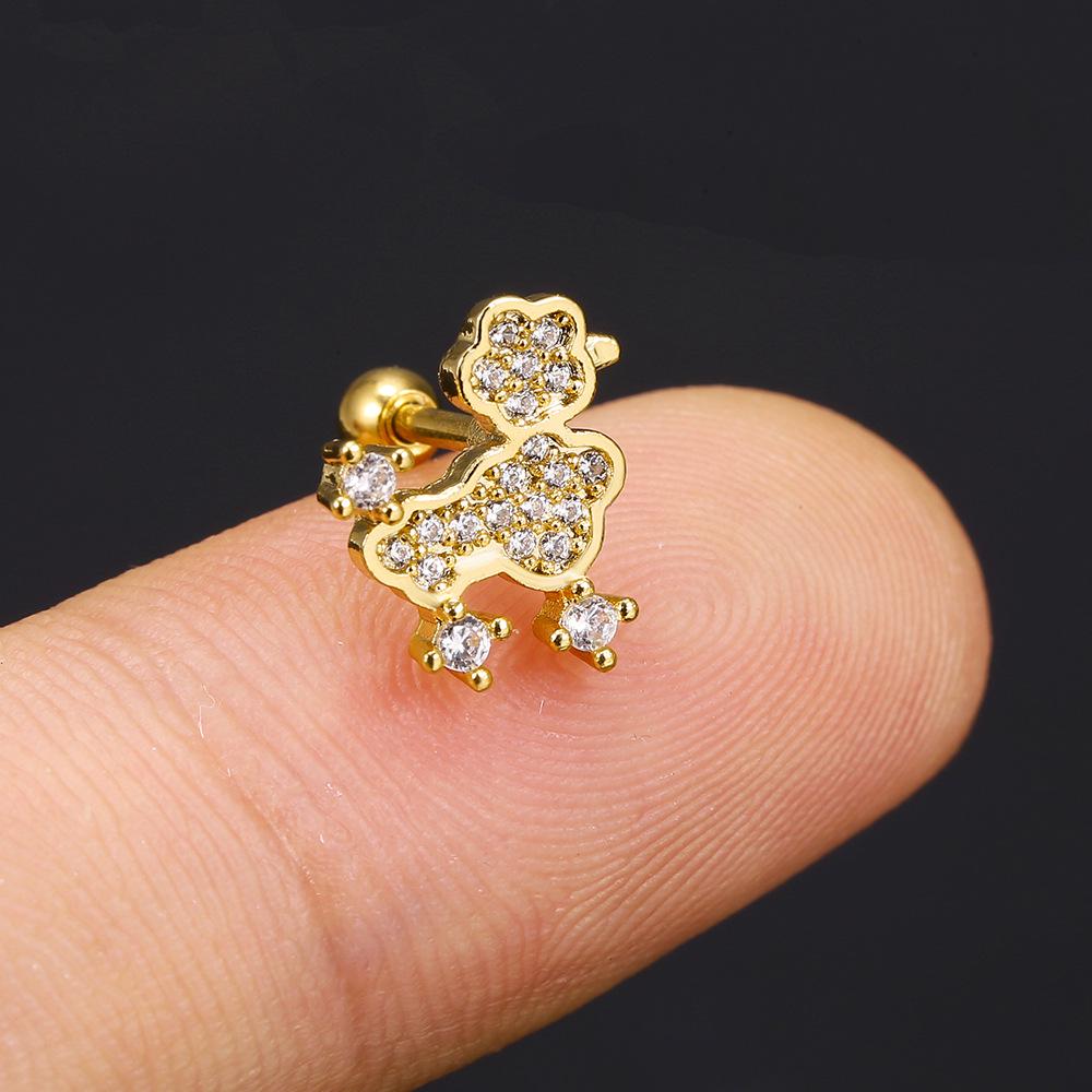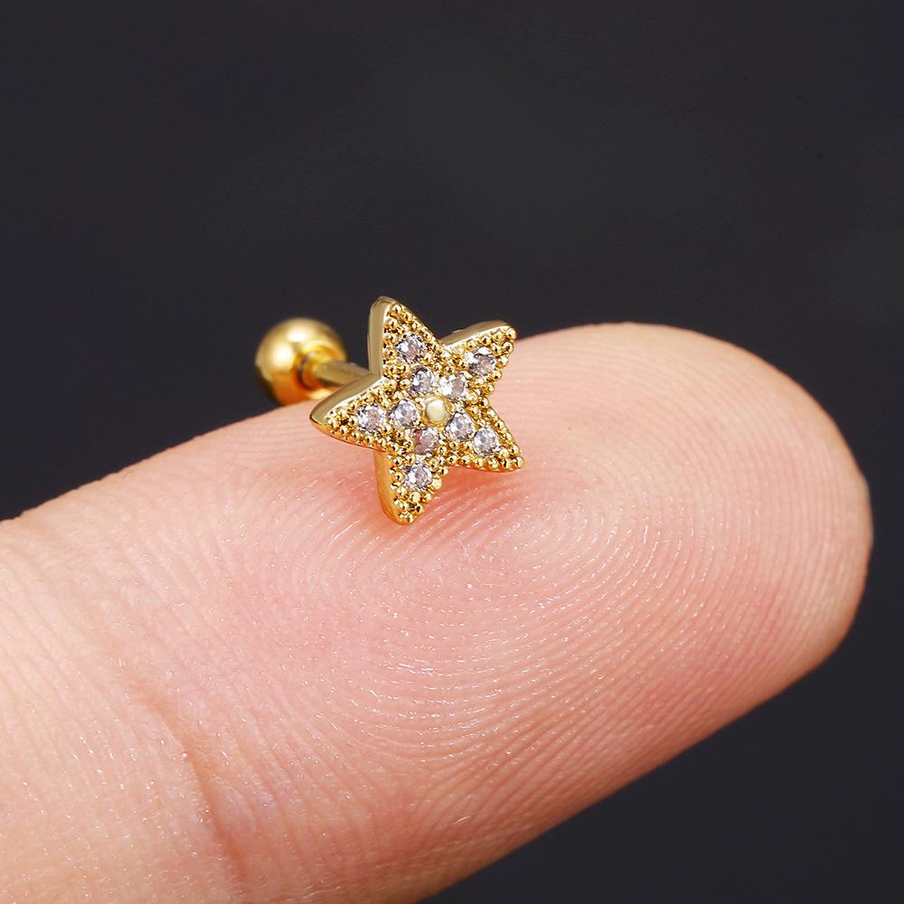 Позолоченные креативные серьги-винты с микроинкрустацией цирконием