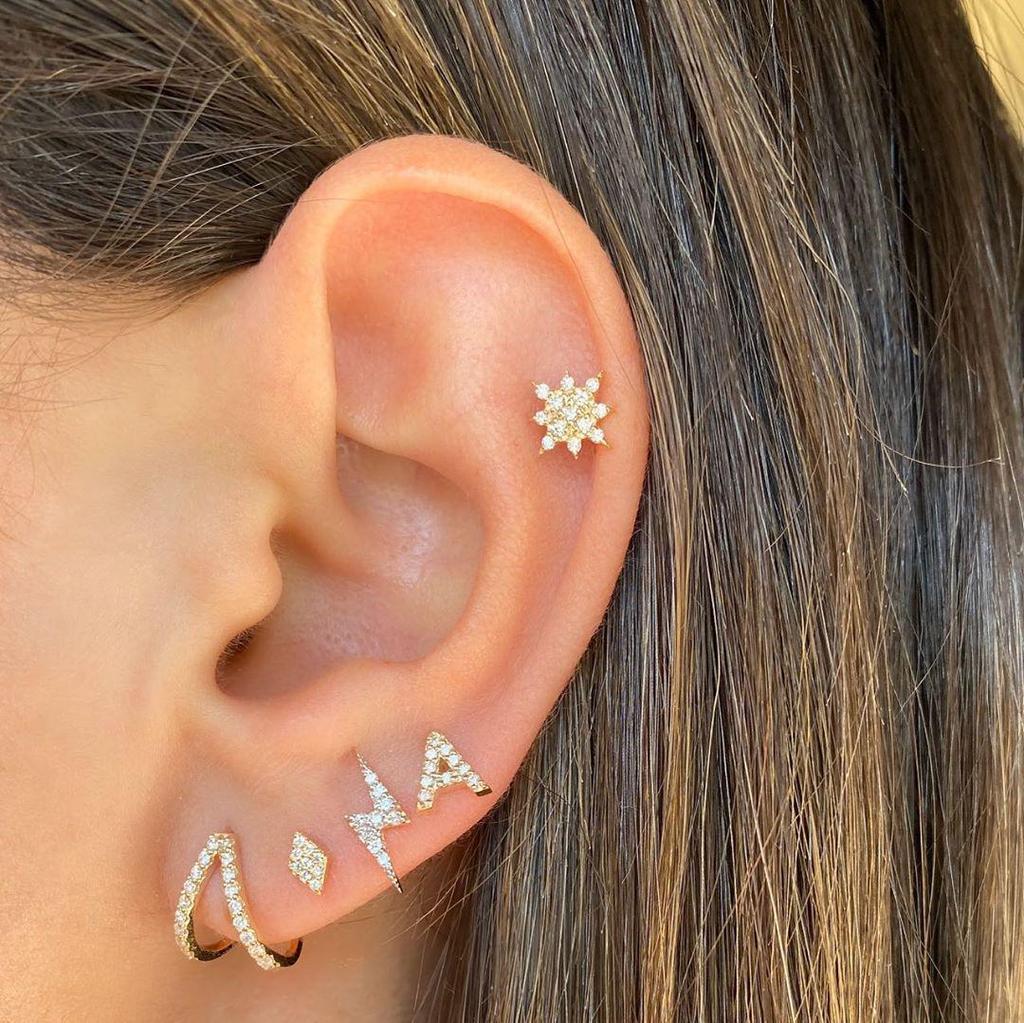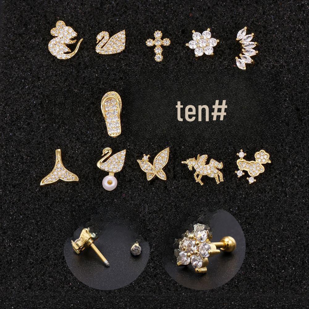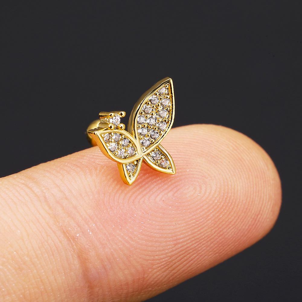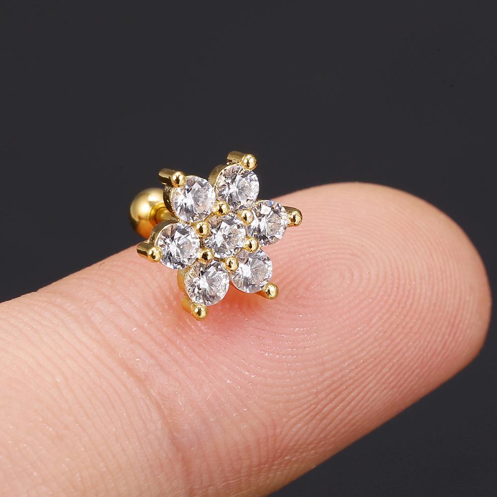 Позолоченные креативные серьги-винты с микроинкрустацией цирконием