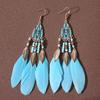 Серьги-кисточки Bohemian Water Drop: Длинный дизайн с перьями и рисовыми бусинами, этнический стиль для женщин - Идеальный аксессуар для путешествий и отдыха