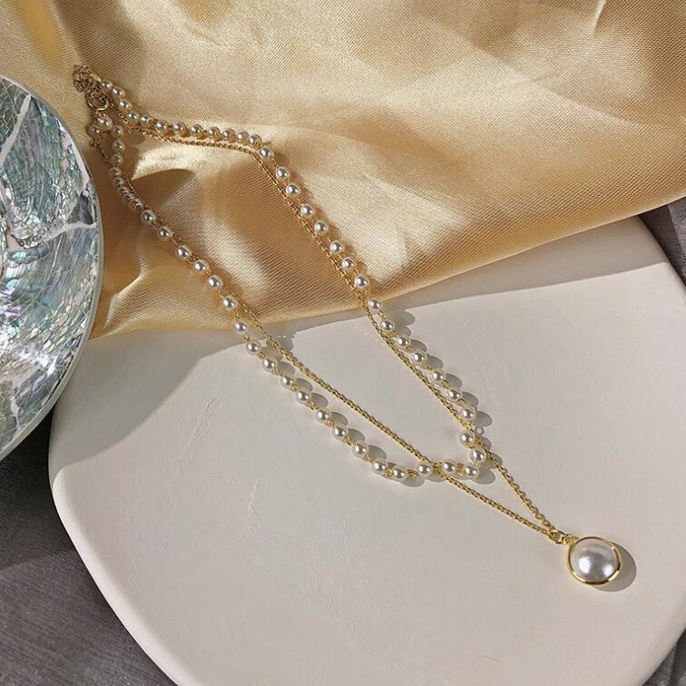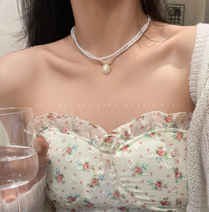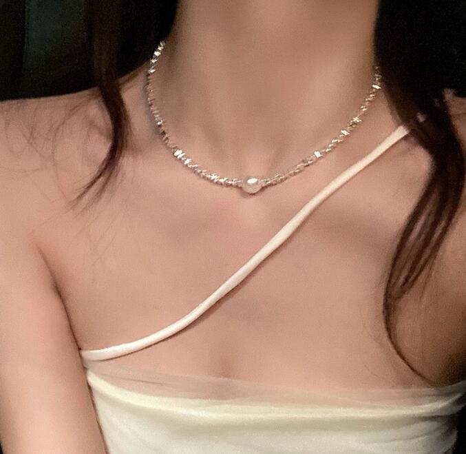 Двухслойный чокер-цепочка на ключицу с жемчугом - Элегантный нишевый дизайн для женщин