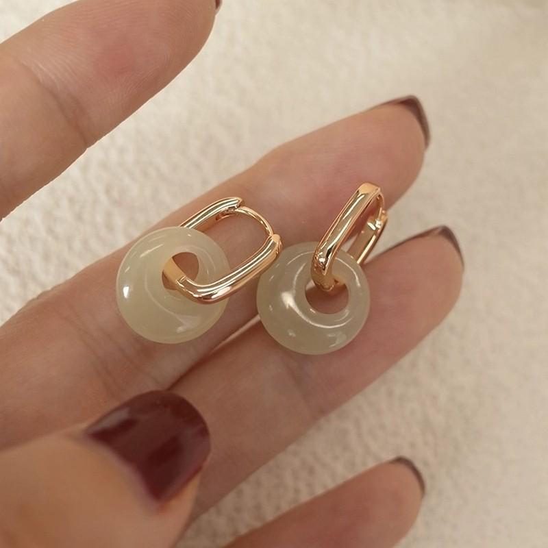 Элегантные серьги в китайском стиле с имитацией нефрита Хэтянь в виде пряжки мира для женщин - Пара круглых серег