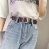 Корейский шик Ретро Прямоугольная серебряная пряжка Женский широкий ремень для джинсов
